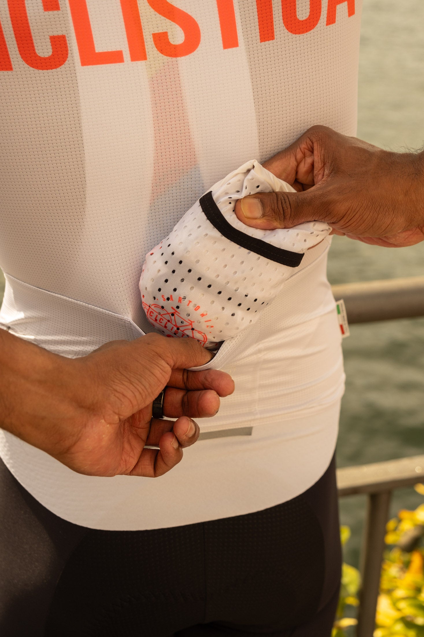 Every fabric, proudly made in Italy, has been carefully selected to ensure perfect fit, wind and water proofability, and unmatched aerodynamic efficiency.