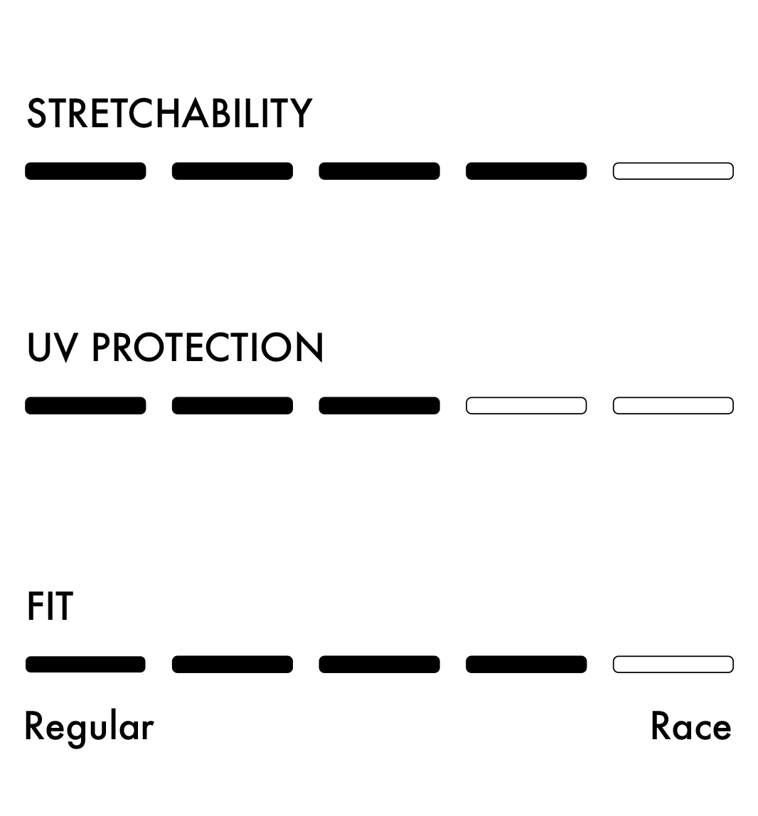 A windshield fabric on the front and shoulders, and a breathable fabric on the back. Two highly reflective bands on the back sides. The high silicone band on the bottom keeps it securely in place, no matter how much you move.